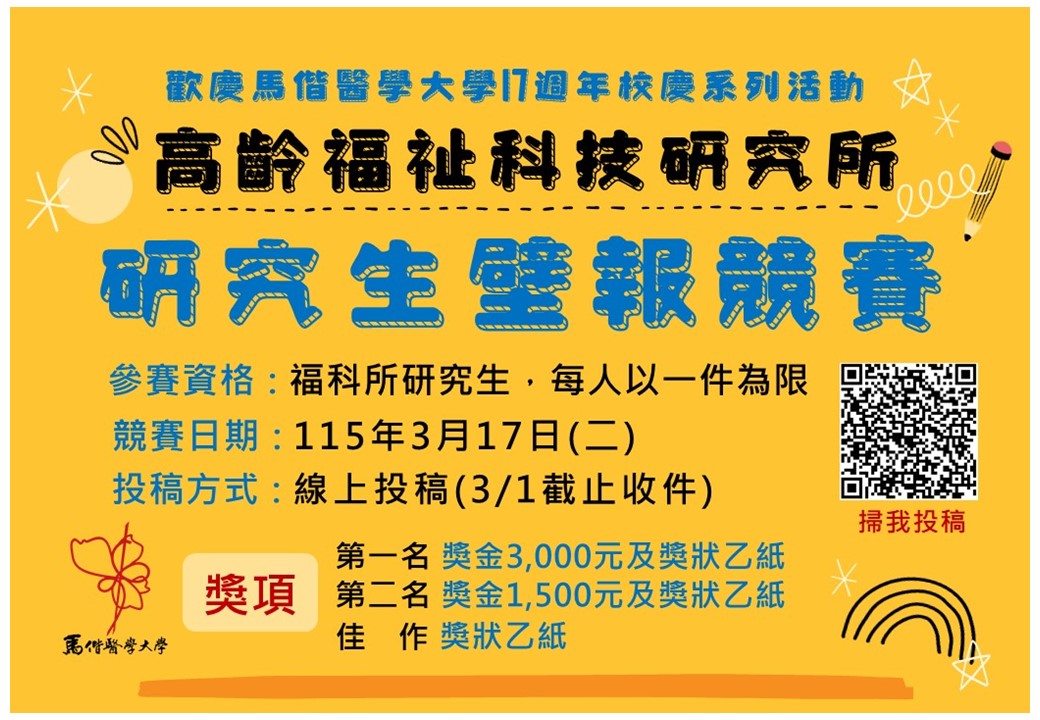 📌 高齡福祉科技研究所【研究生壁報競賽】投稿開始!