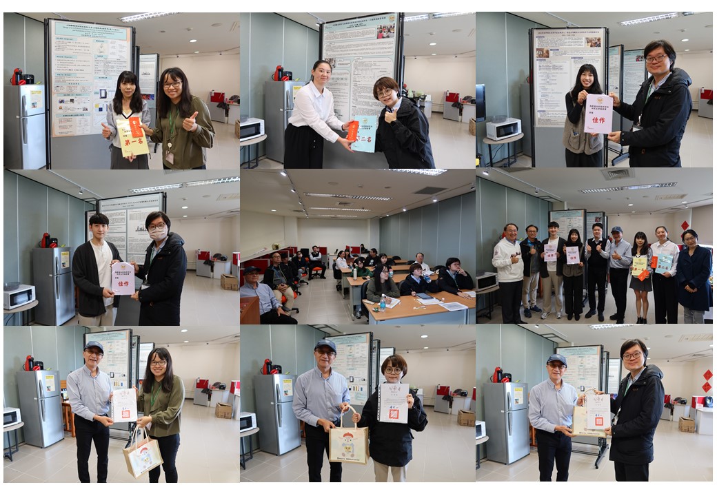 本次壁報競賽已順利完成,感謝參與發表的研究生們用心準備,展現豐富的研究成果與專業表達,讓本次活動充滿學術交流與精彩亮點,也特別感謝本校視光學系-林祐毅老師、醫檢學系-趙巧瑄老師以及長照所-鄭方瑜老師的審查與指導! 👏✨